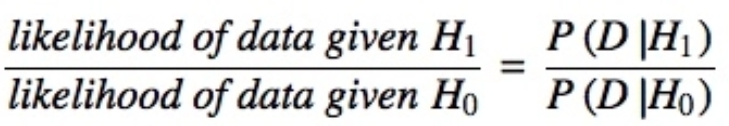 • When we are comparing two hypotheses, H1 (the alternate hypothesis) and H0 (the null hypothesis), the Bayes Factor is often written as B10. It can be defined mathematically as shown below: